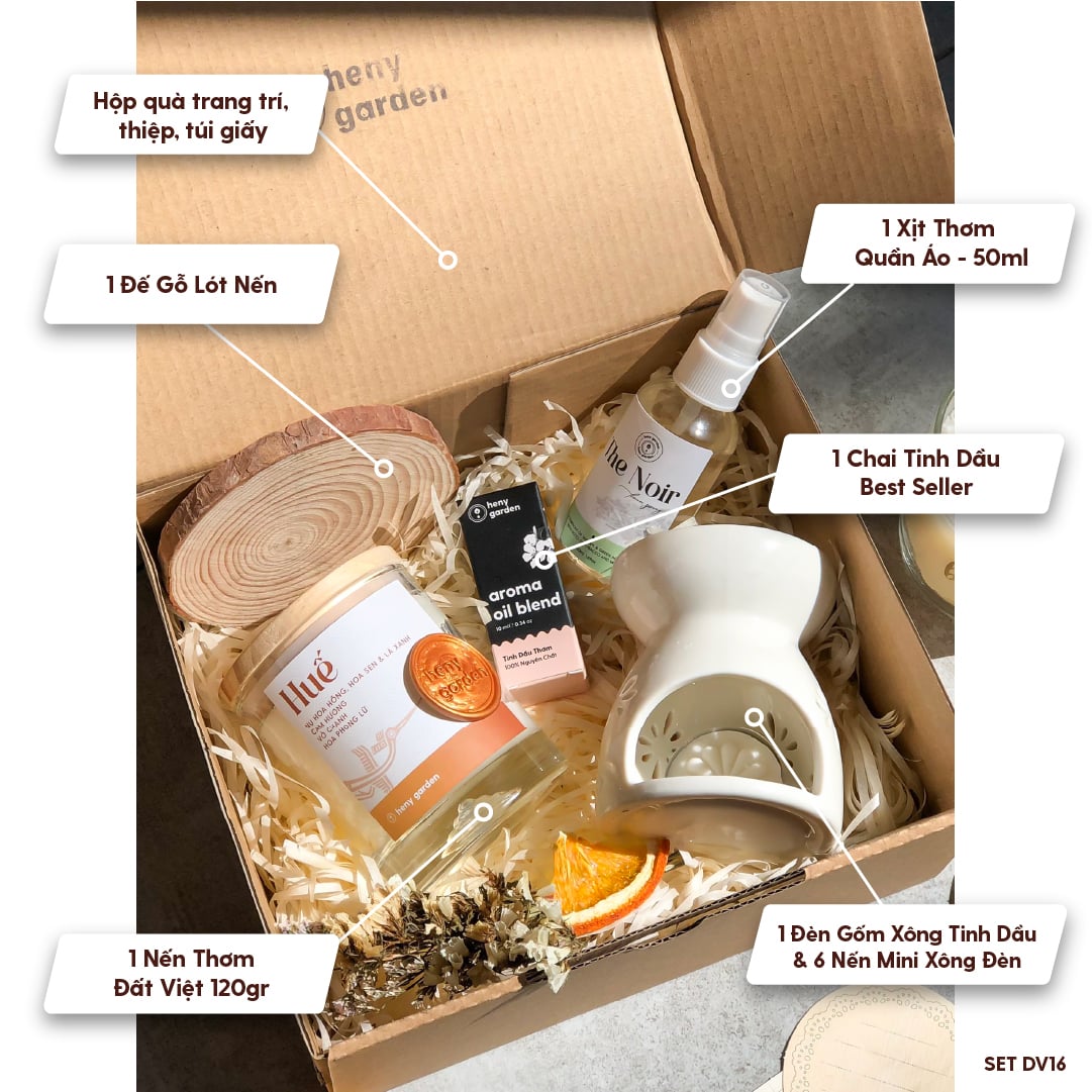 - Tinh dầu thơm: Tinh dầu được xem là một dạng Aromatherapy - Liệu pháp mùi hương hiệu quả. Với hơn 60 mùi đa dạng và hoàn toàn từ thiên nhiên. Tinh dầu thơm Heny Garden sẽ là một món quà cực kỳ ý nghĩa dành tặng cho người thương của mình.
