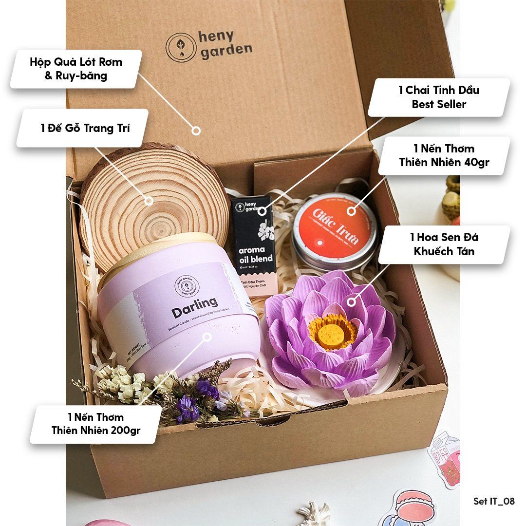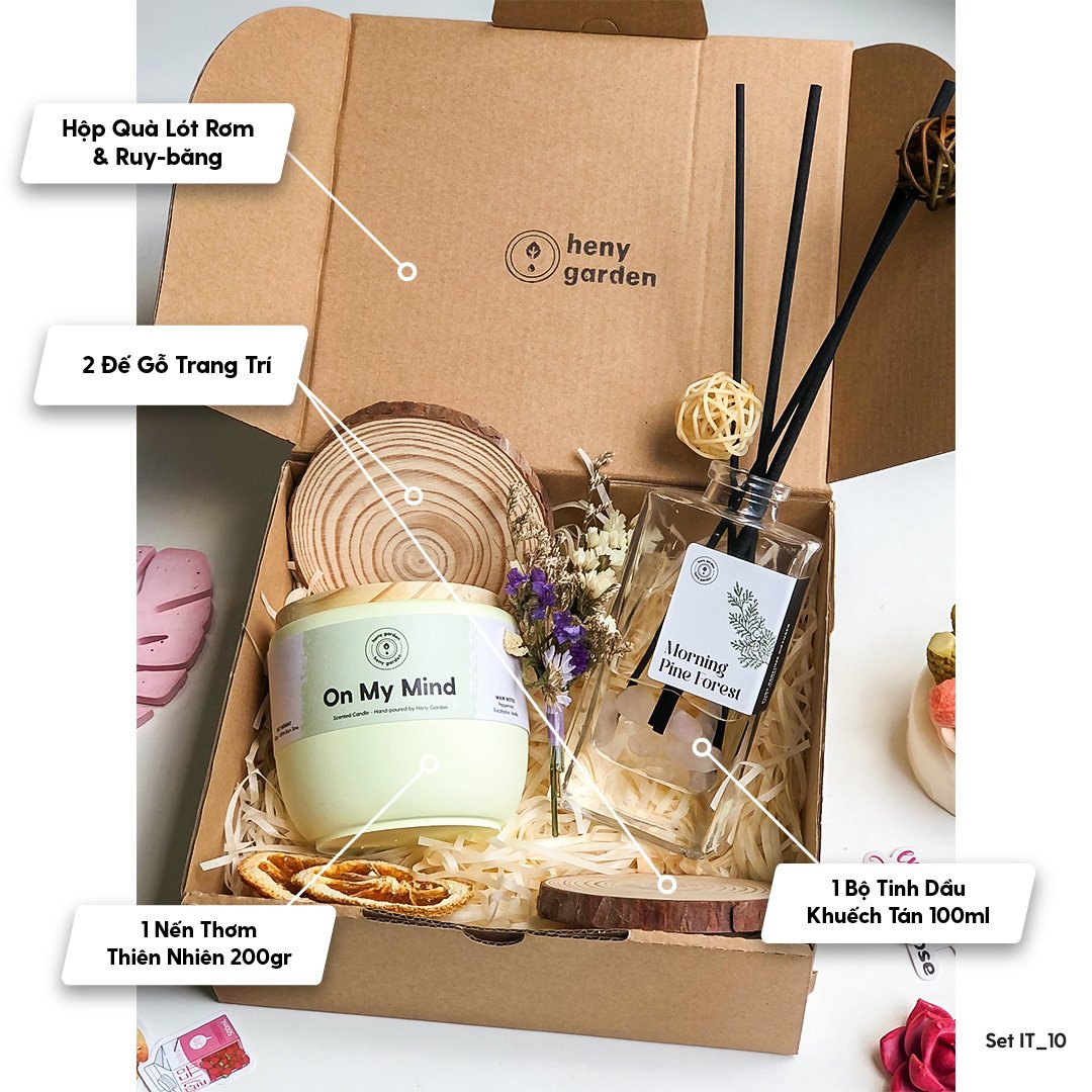 Lựa chọn set quà tặng trao đi phần nào thể hiện tâm ý của người tặng và biểu lộ tình cảm một cách tinh tế với đối phương. Cùng khám phá set quà tặng nến thơm tại Heny Garden nhé.