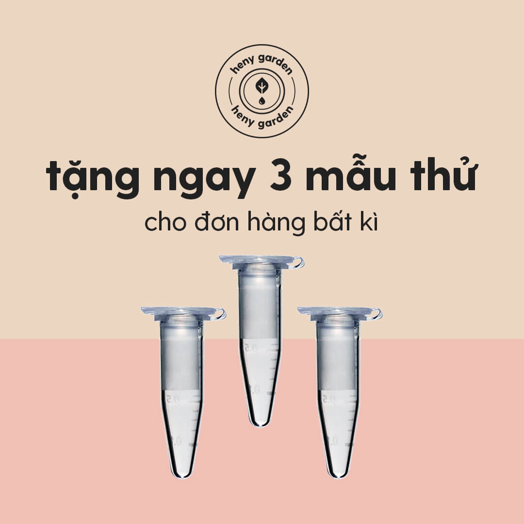 Heny Garden gửi tặng bạn 3 mẫu thử tinh dầu ngẫu nhiên trên mỗi đơn hàng bất kỳ, mỗi mẫu thử tinh dầu có dung tích (~0.2ml) tặng kèm với mỗi đơn hàng giúp bạn trải nghiệm mùi hương trực tiếp hoặc dùng với máy khuếch tán.